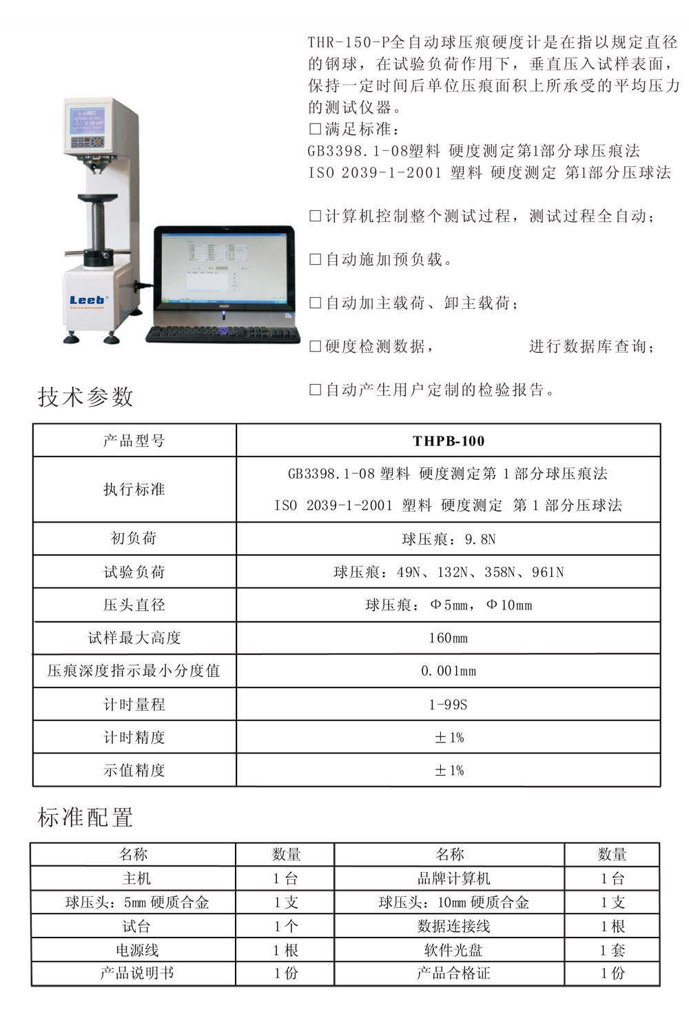 THPB-100全自動(dòng)球壓痕硬度計(jì)是在指以規(guī)定直徑的鋼球,在試驗(yàn)負(fù)荷作用下,垂直壓入試樣表面,保持一定時(shí)間后單位壓痕面積上所承受的平均壓力的測試儀器。