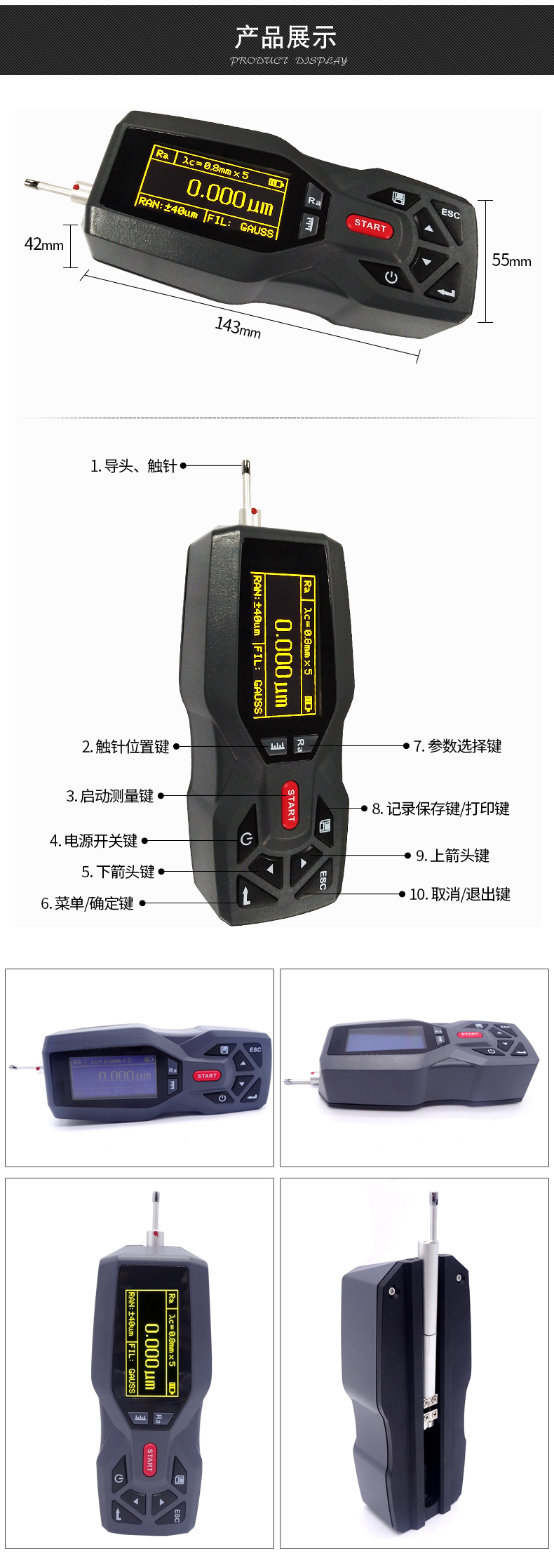 大量程,多參數Ra,Rz,Rq,Rt,Rp,Rv,R3z,R3y,RzJIS,Rsk,Rku,Rsm,Rmr;