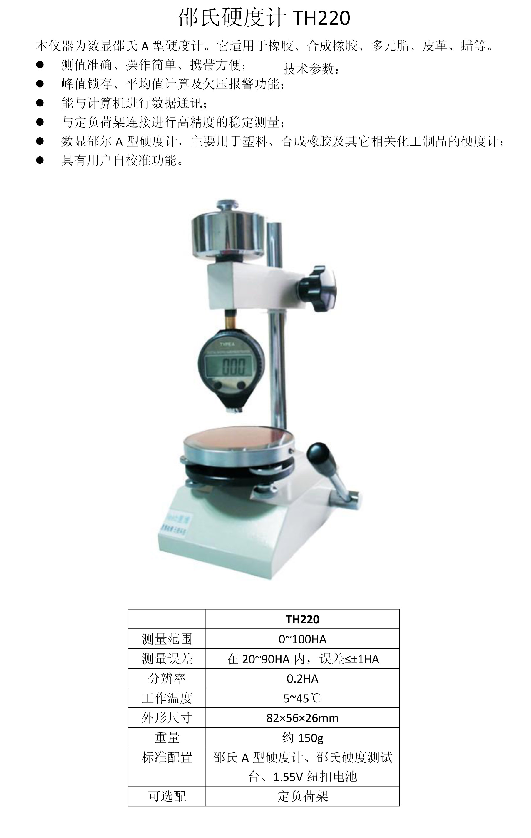 本儀器為數顯邵氏A型硬度計。它適用于橡膠、合成橡膠、多元脂、皮革、蠟等。
