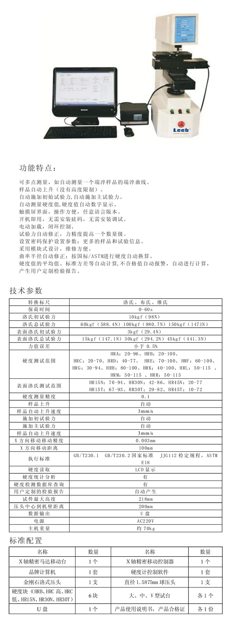 ● 自動測量硬度值,硬度值自動數字顯示;