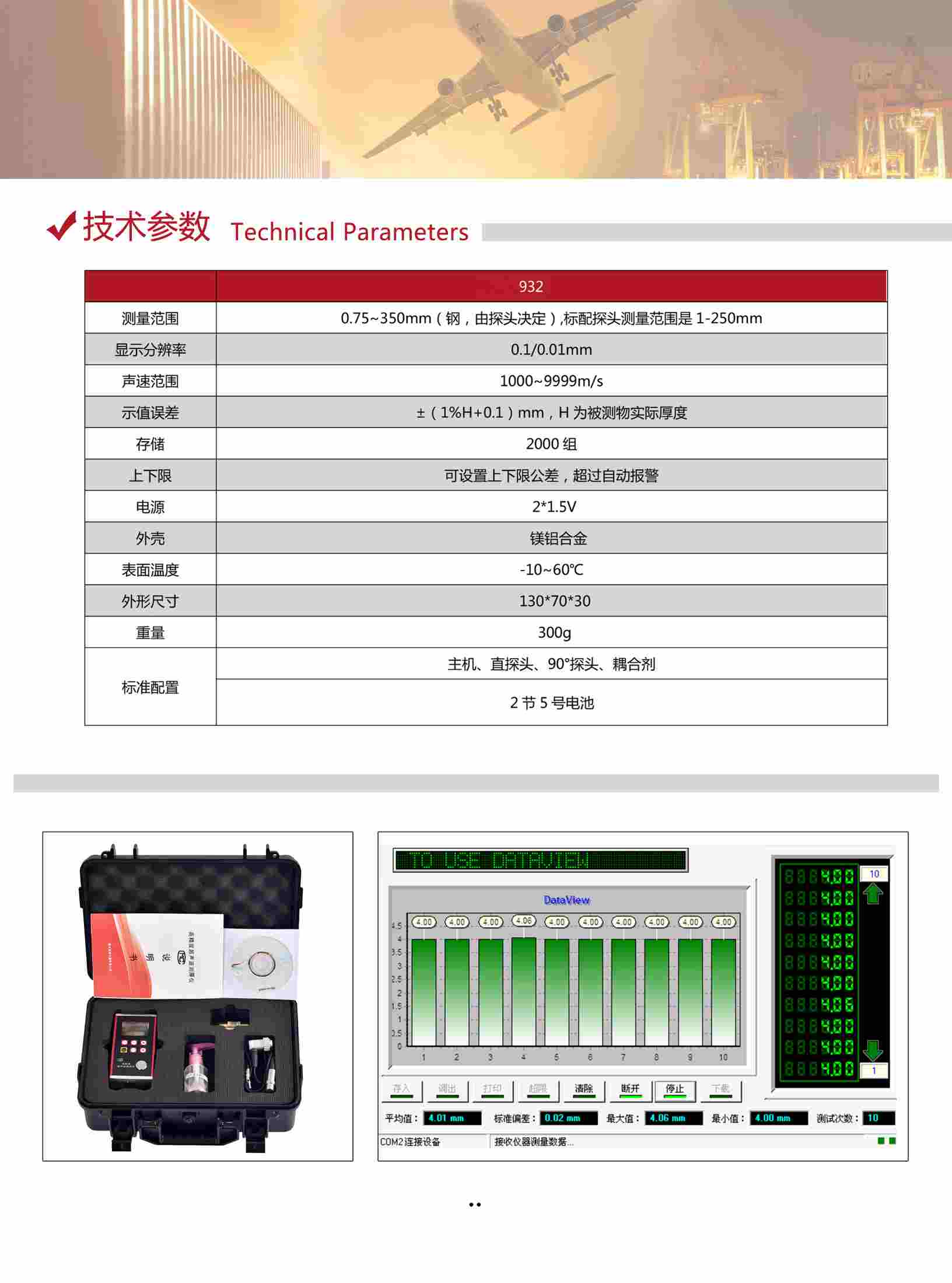 4.適合測量金屬(如鋼、鑄鐵、鋁、銅等)、塑料、陶瓷、玻璃、玻璃纖維及其它超聲波的良導體的厚度;