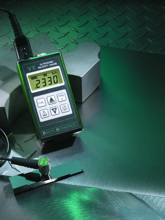 DAKOTA公司VX是一種手持式超聲波聲速測定儀(球化率儀)。當(dāng)被測定的材料是鑄件、合金或者塑料時(shí),VX就會測出聲波穿過它們時(shí)的速度。因此,可得出所測材料內(nèi)部組織是否緊密有無缺陷。如可預(yù)先將球墨鑄鐵不同球化率百分比(通過金相法)試樣做出,分別測量其不同的聲速值,對鑄件進(jìn)行批量檢查。