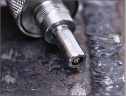 該儀器采用超聲接觸阻抗法(UCI),符合ASTM A1038標準,是一種非直接測量壓痕的動態壓入法。端部鑲有特定壓頭(如金剛石壓頭)的振動桿受到激勵做縱向超聲振動,用一定的試驗力將壓頭壓入試驗表面,振動桿的縱向振動將受到阻抗,諧振頻率發生變化,從而得出硬度值。這種硬度測量方法已經在各國大范圍使用,并且已經在工業領域使用了50多年。