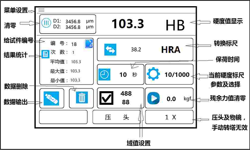 ● 壓痕直徑長度D1和D2值輸入,減少人為讀數誤差;