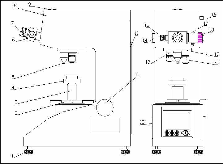 一體化鑄鋁機身,不變形,不位移,外觀漆水采用汽車烤漆工藝,砝碼加載結構,性能穩定,5.1吋大屏LCD顯示,可切換硬度標尺HV或HK;菜單式結構,操作簡便;高清光學系統和物鏡,光源亮度可以20級調節,硬度換算功能;對角線長度D1和D2編碼器輸入,減少人為讀數誤差,定位準確;測量結果和數據處理,可通過打印機輸出。