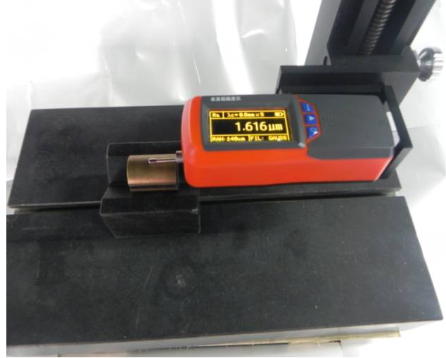銅套、套類(lèi)工件在使用過(guò)程中內(nèi)壁以及外壁需要與相配的部件產(chǎn)生潤(rùn)滑摩擦,所以對(duì)粗糙度也提出了要求。這類(lèi)小套件由于體積較小、重量也比較輕、正常擺放測(cè)量工件會(huì)產(chǎn)生位移,無(wú)法測(cè)量。里博分體粗糙度儀、配上大理石測(cè)量平臺(tái)和V形塊,可以固定工件、檢測(cè)出實(shí)際粗糙度值。用于現(xiàn)場(chǎng)檢測(cè),也可以用于實(shí)驗(yàn)室檢測(cè)。