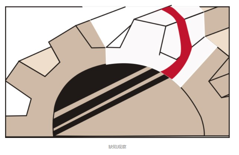 5. 觀察材料表面缺陷,在被測材料表面噴涂顯像劑后,觀察材料表面,直至跡痕的大小不發生變化為止。必要時可進行多次探傷。