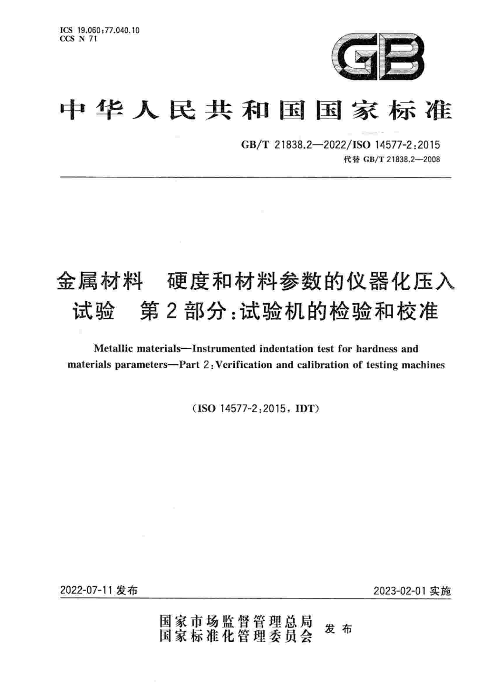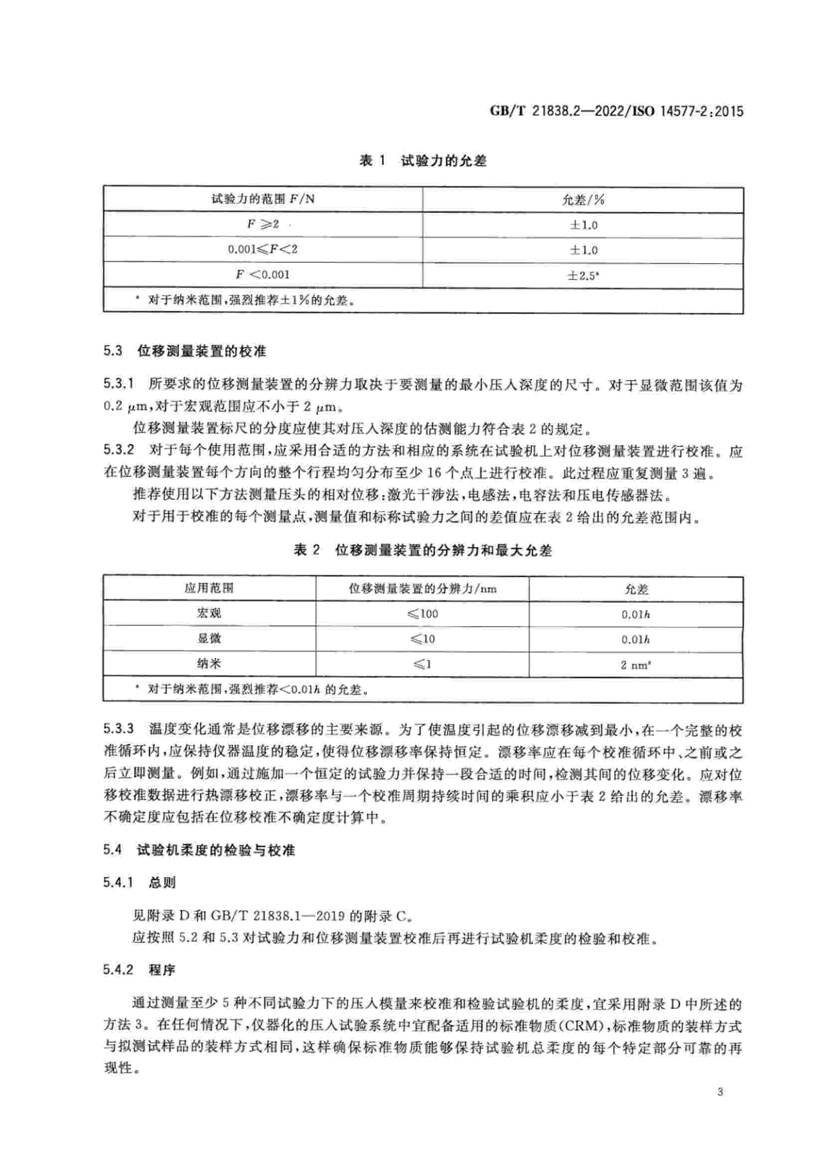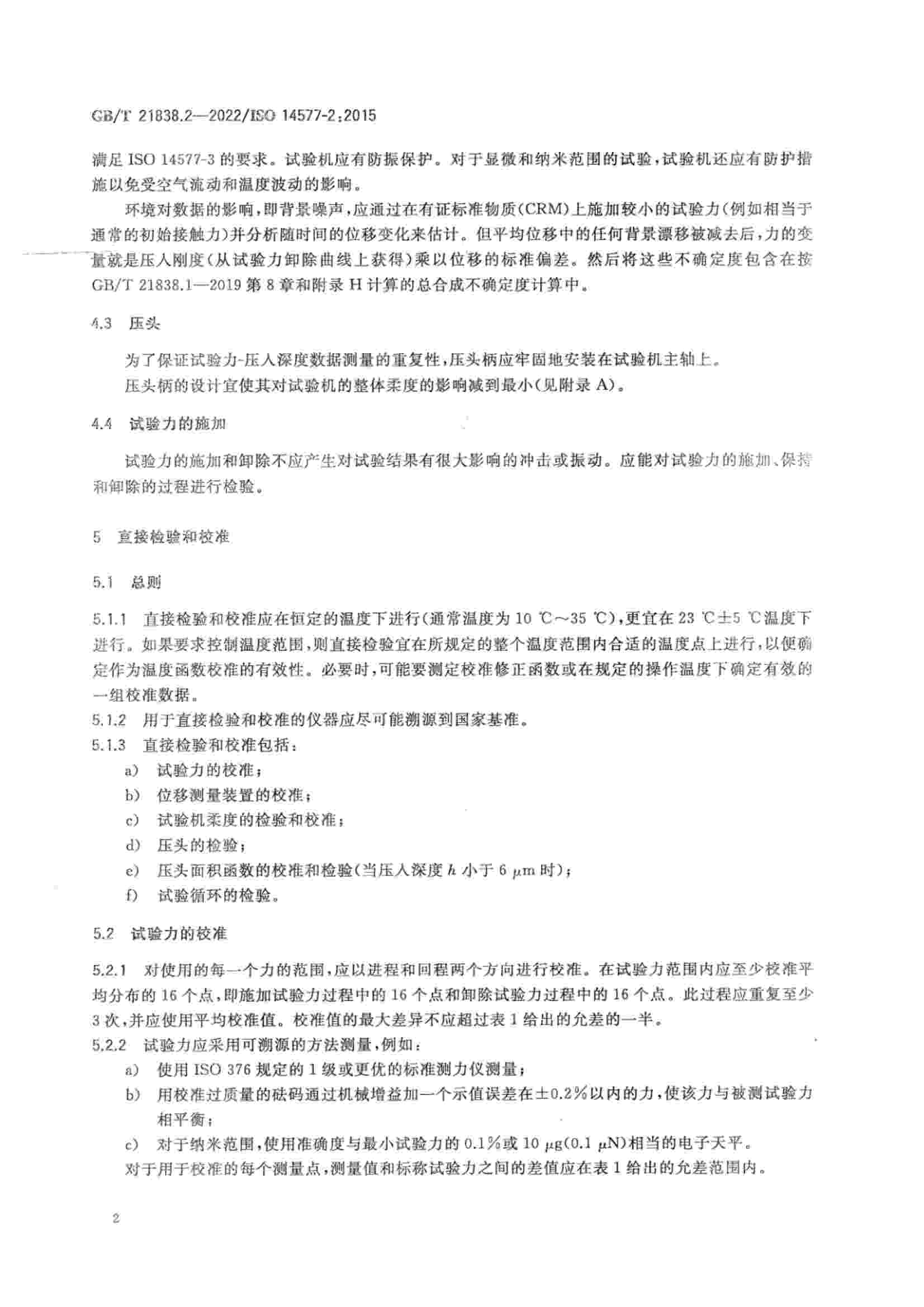 《GBT 21838.2-2022 金屬材料 硬度和材料參數的儀器化壓入試驗 第2部分:試驗機的檢驗和校準》