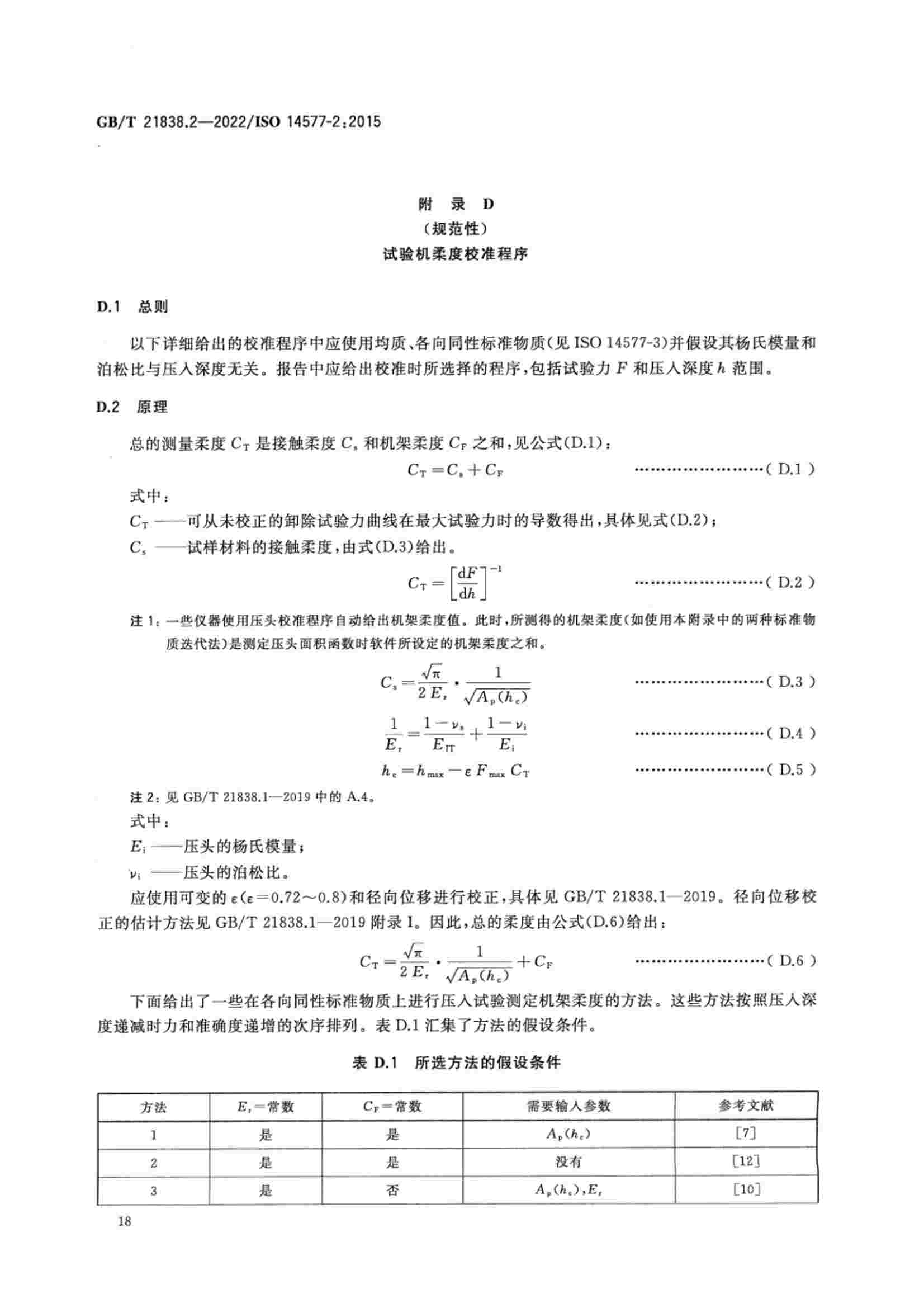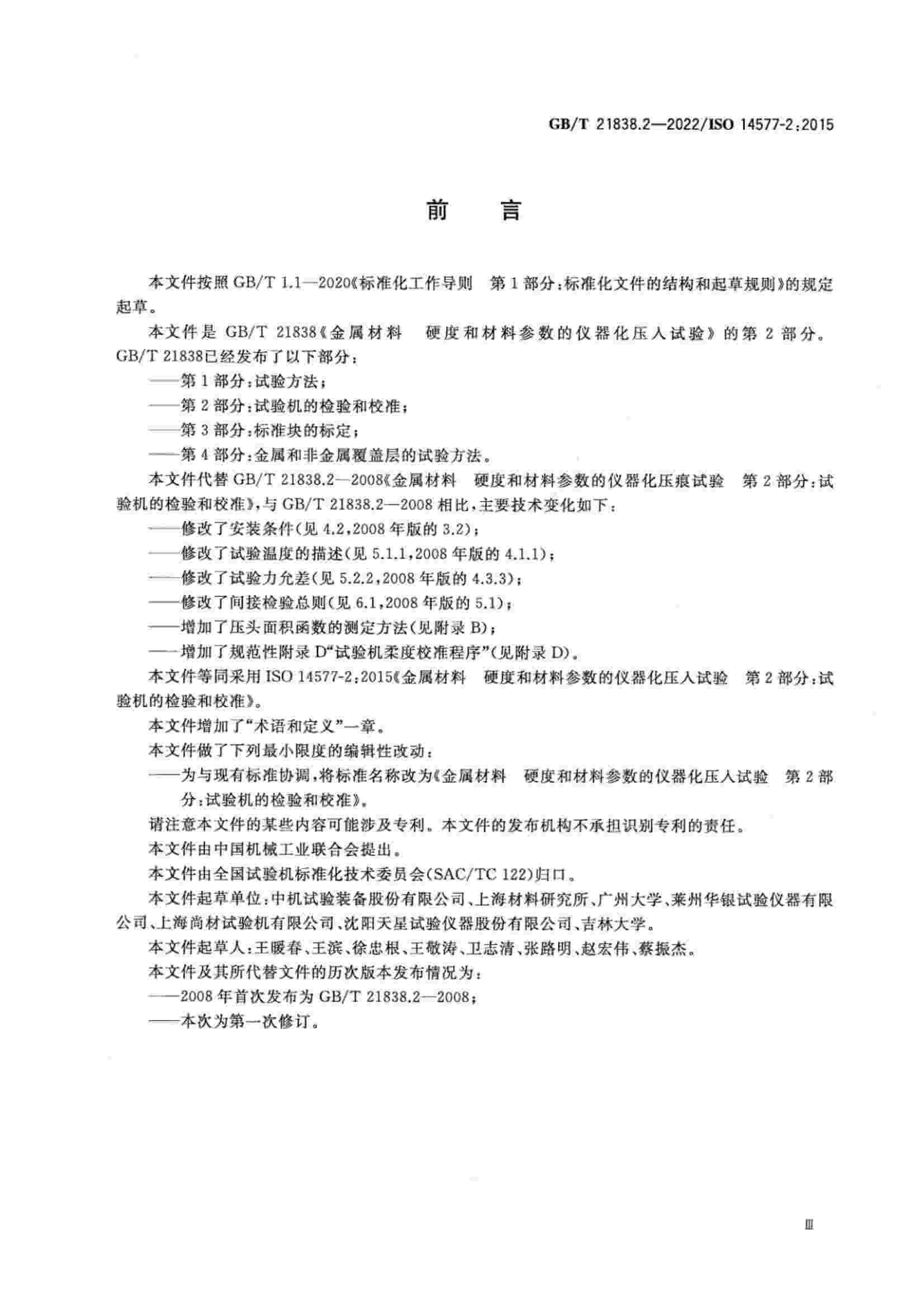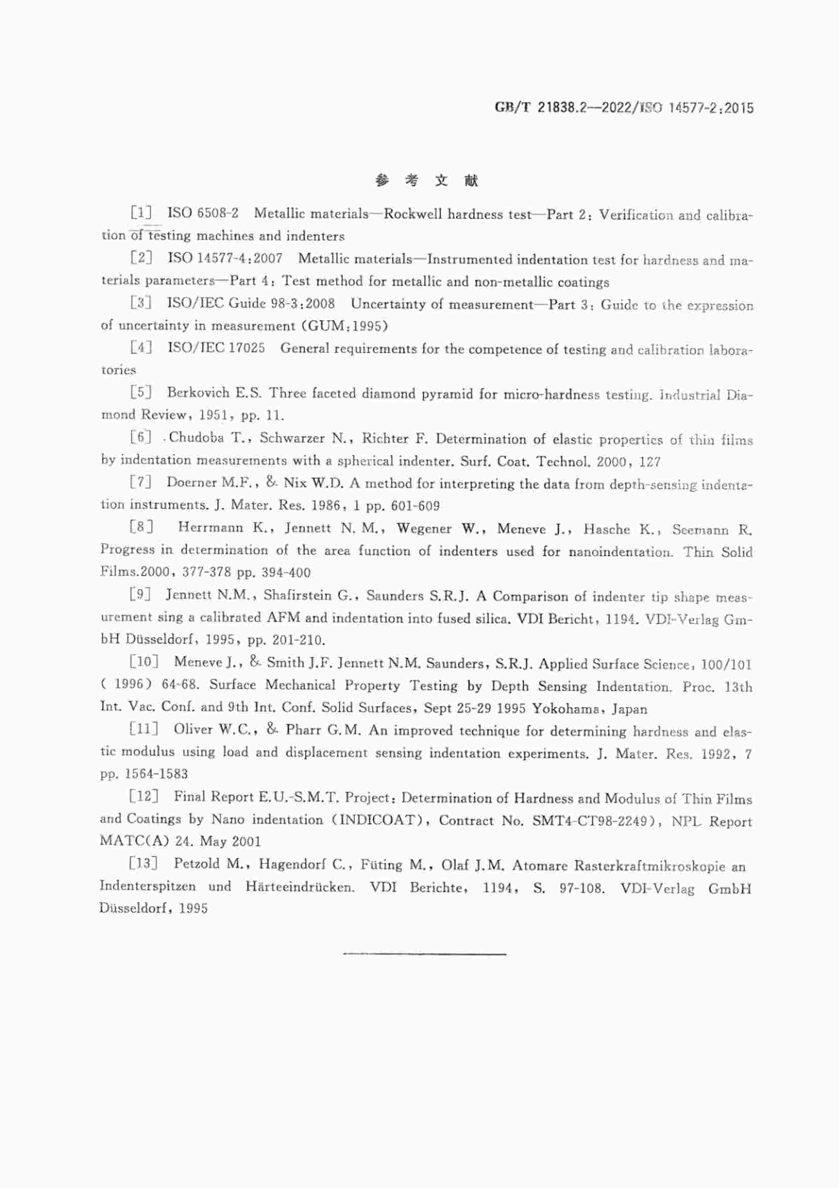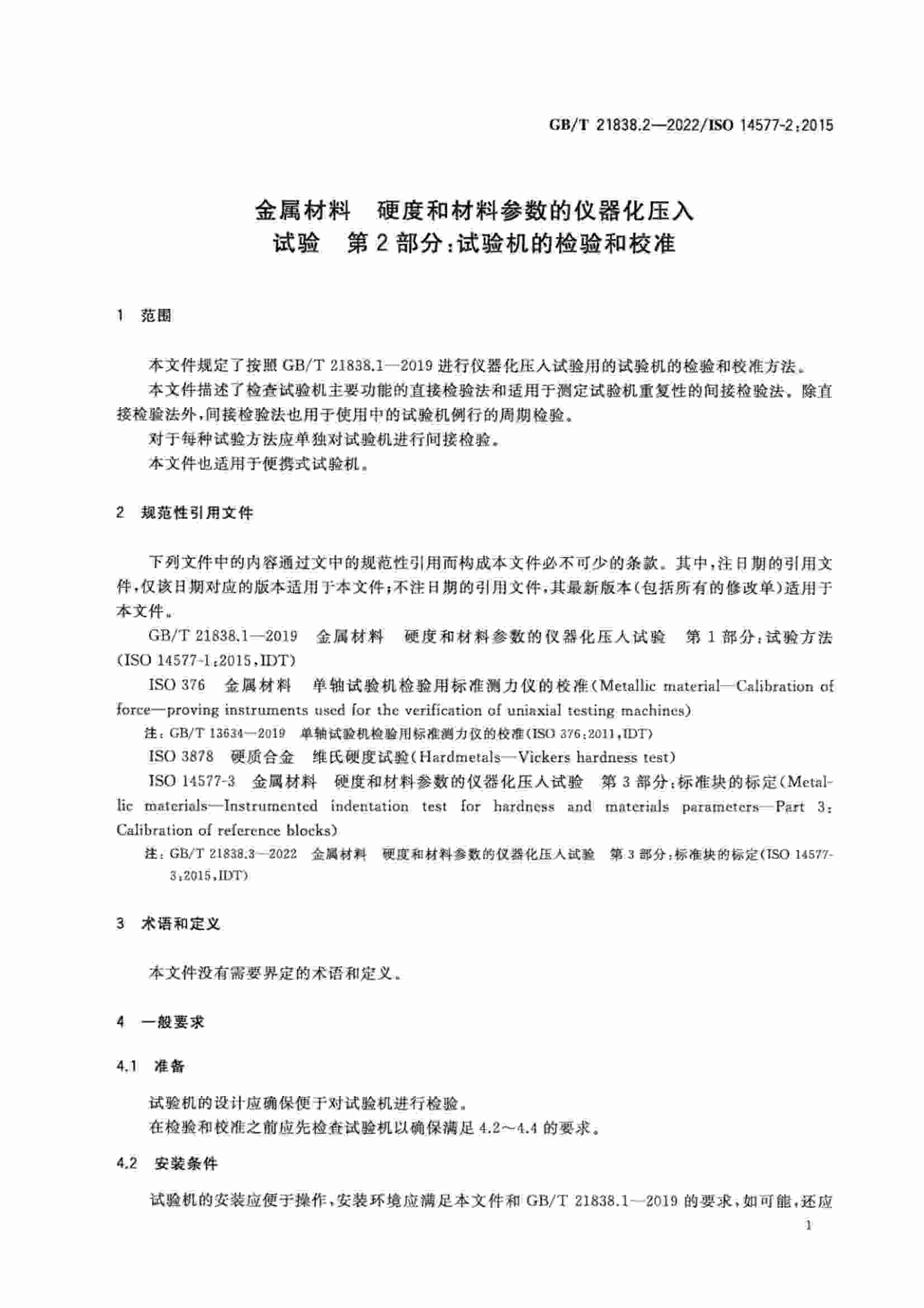 《GBT 21838.2-2022 金屬材料 硬度和材料參數的儀器化壓入試驗 第2部分:試驗機的檢驗和校準》