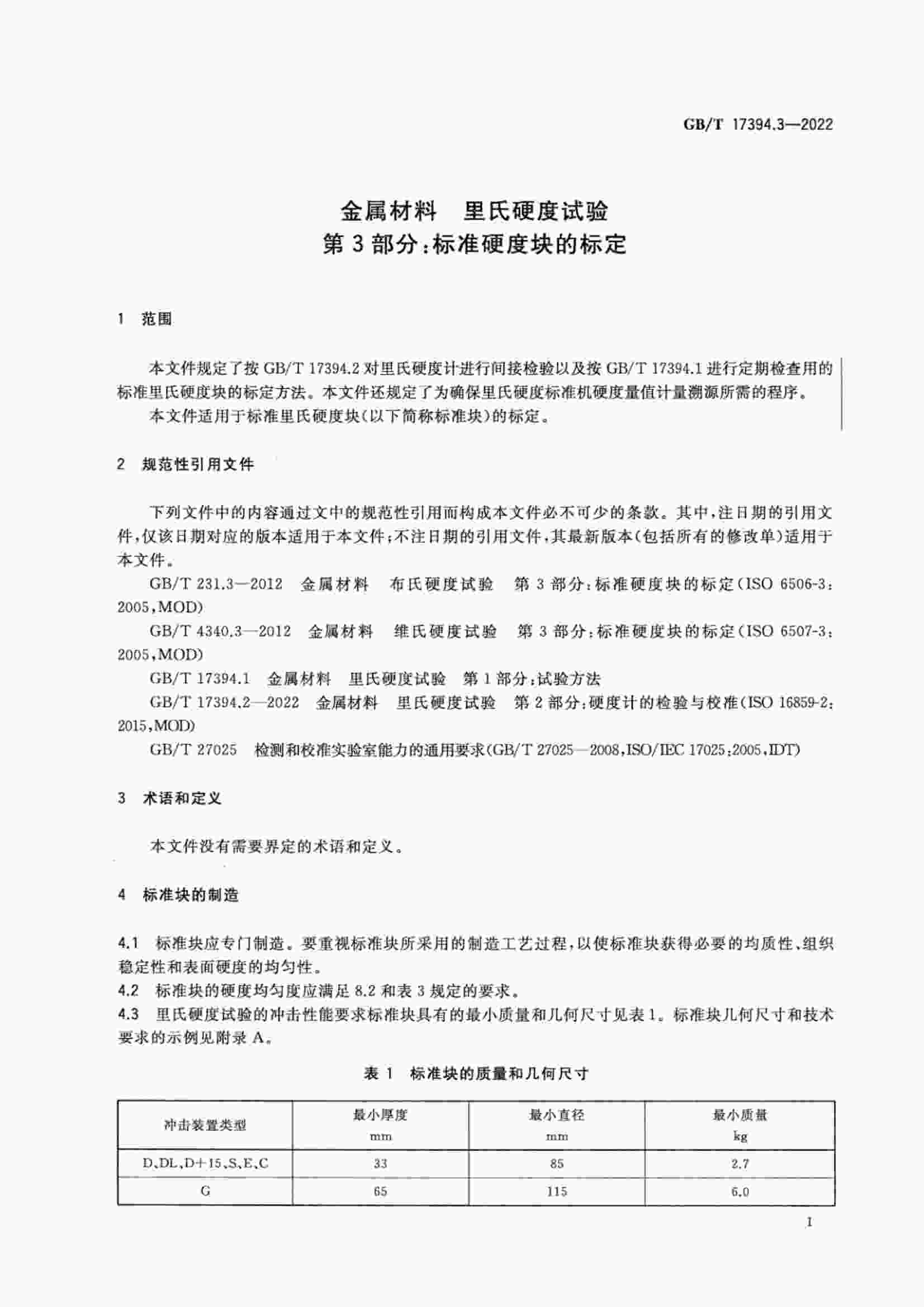 GBT 17394.3-2022 金屬材料 里氏硬度試驗 第3部分:標準硬度塊的標定》