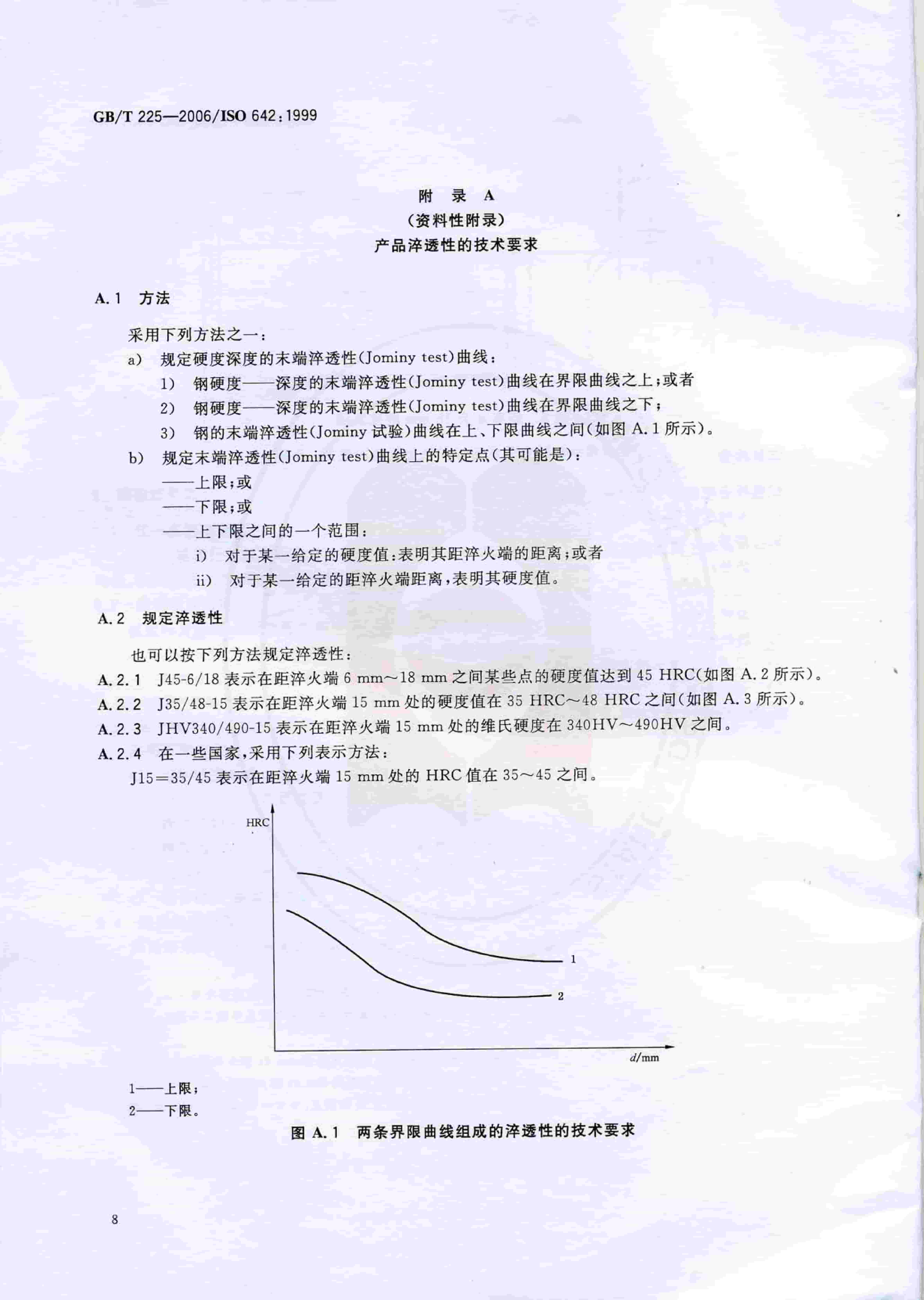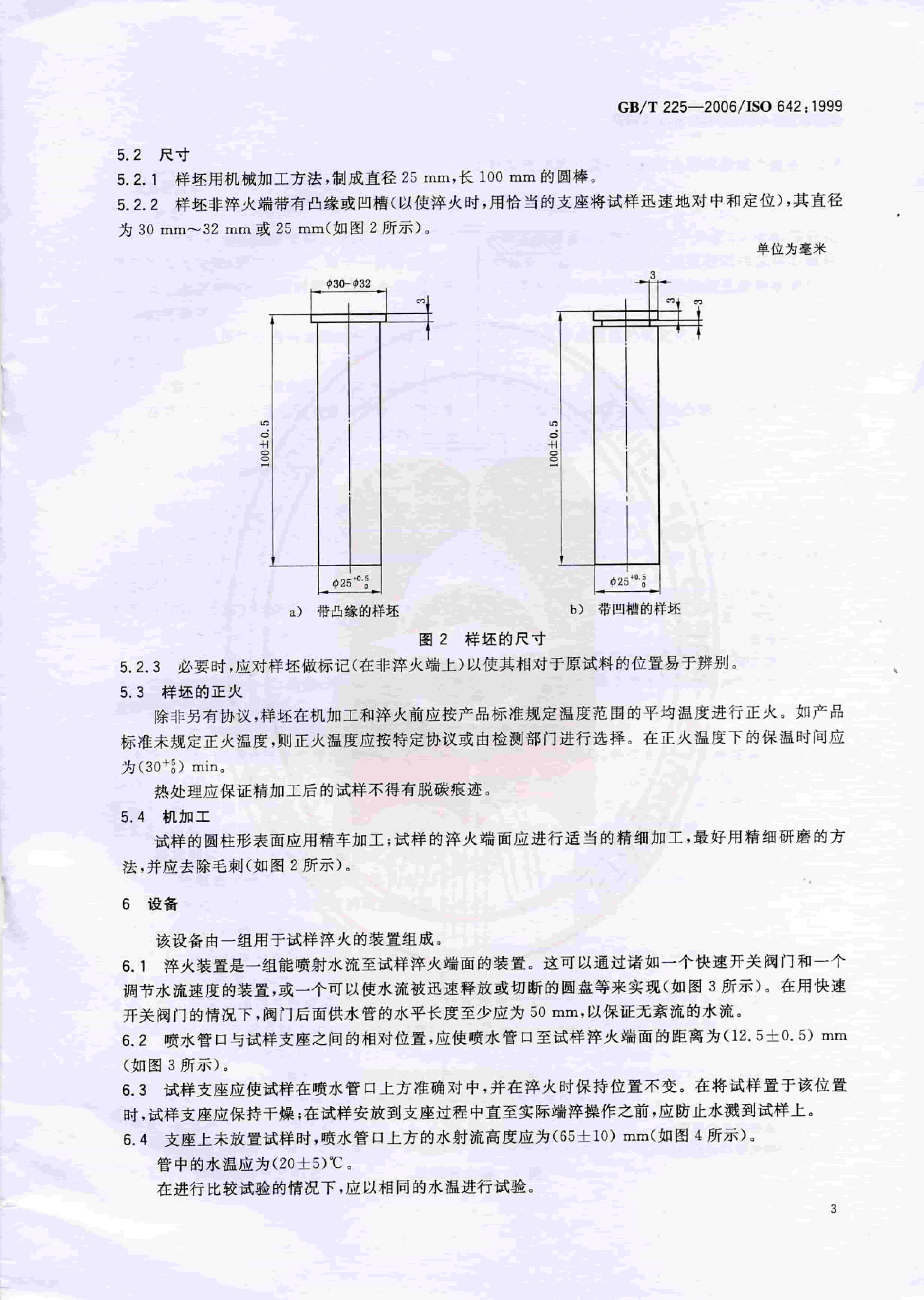 GBT 225-2006 鋼 淬透性的末端淬火試驗方法(Jominy 試驗)